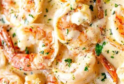 Baked Creamy Tiger Prawns Tuscany Olives & Herbs